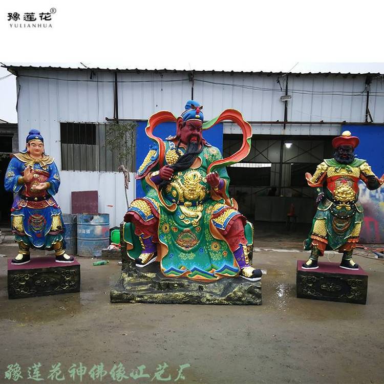 关圣帝君雕塑老关爷塑像关二爷雕塑两侧周仓关平侍卫两侧周仓关平侍卫 关圣帝君雕塑 老关爷塑像 关二爷雕塑