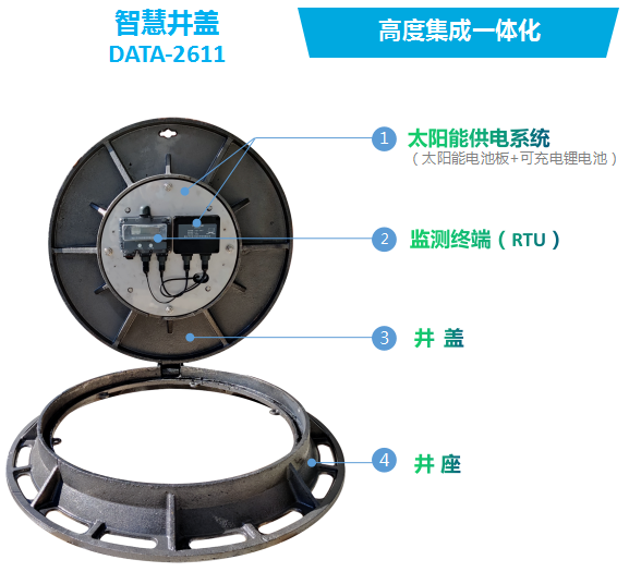 1. 井盖表面嵌入太阳能供电系统,支持实时监测,无需更换电池