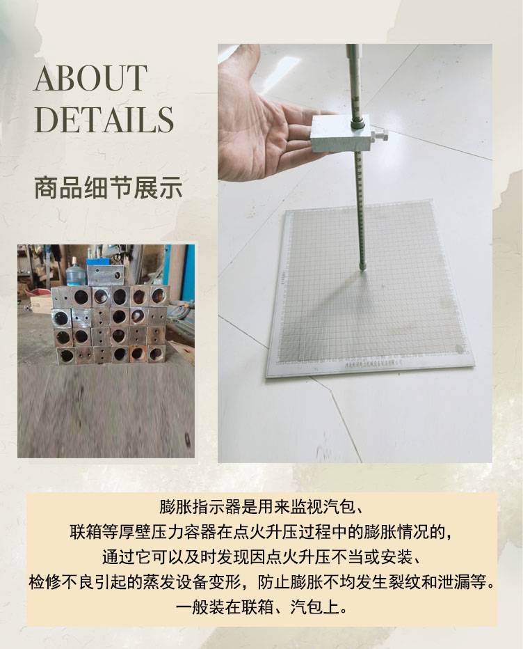 三向位移指示器与双向位移指示器的区别,三向位移指示器:用于燃煤锅炉的主蒸汽管道,其带有指示针和刻度盘,用于测量其管道的蠕变位移量(X轴、Y轴),其材质有A3、12Cr1MoV、F11、F22、F91…