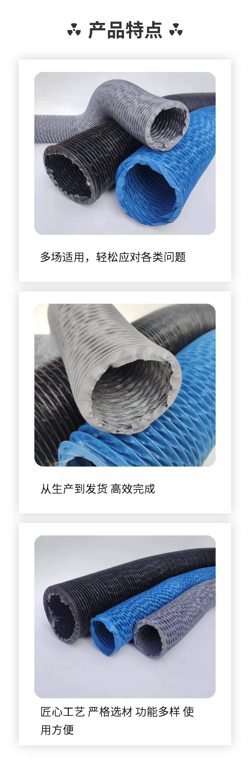 地址:时集镇博古张主营产品:尼龙布风管;PVC塑筋管;PU钢丝伸缩管;高温风管