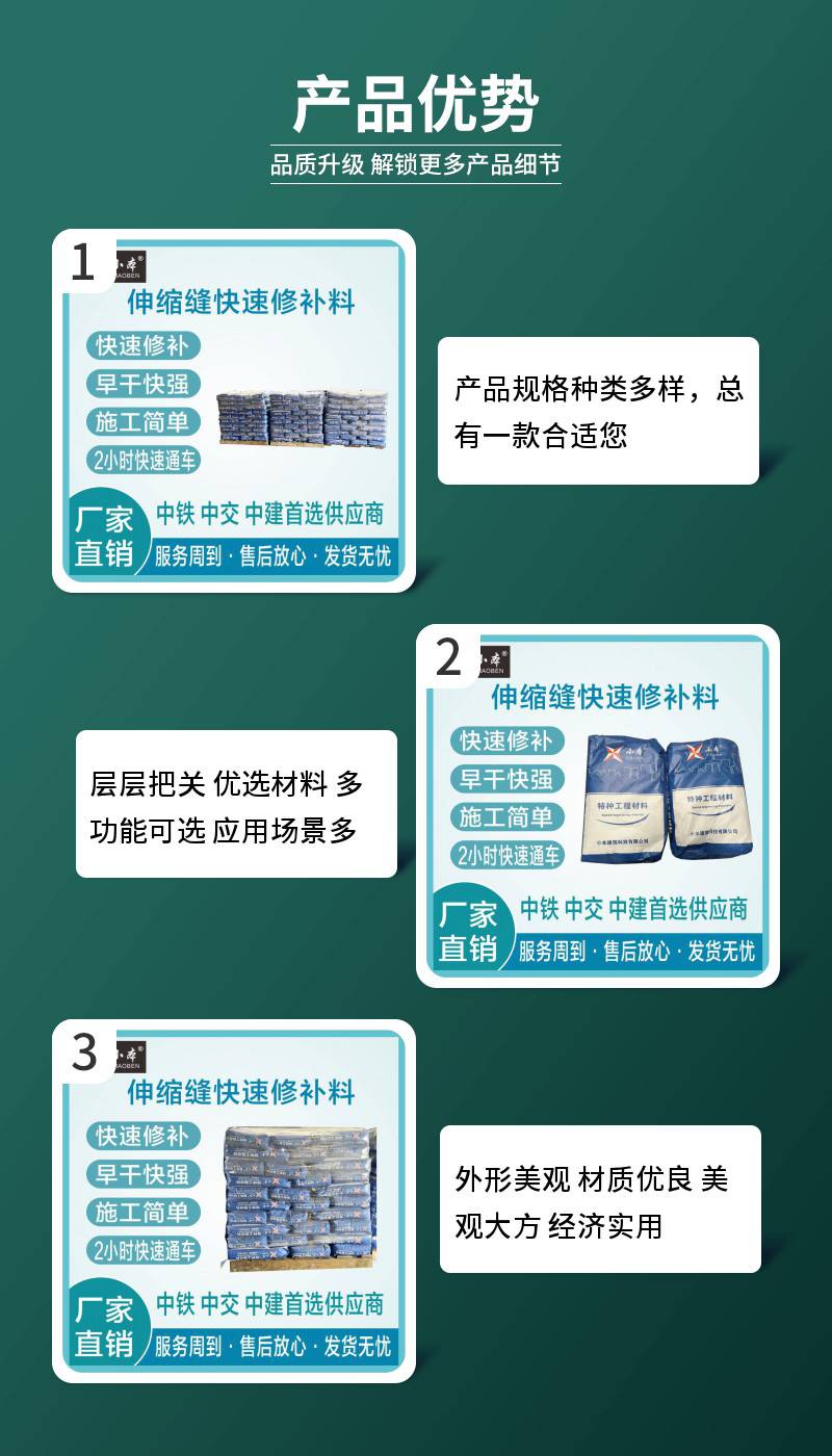 桥梁路面伸缩缝抢修料早强高强快速修补2小时通车小本建材
