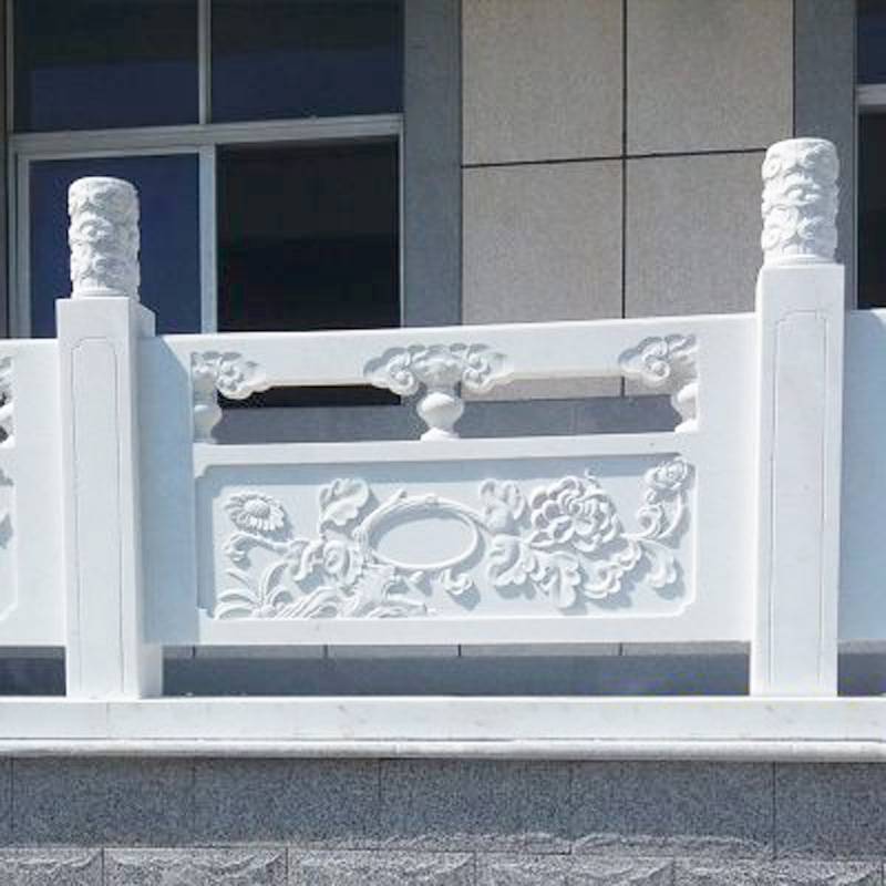 汉白玉石雕栏杆为颜色洁白的细粒大理岩,质坚硬,是的建筑和雕刻材料。汉白玉是一种名贵的建筑材料,它洁白无瑕,质地坚实而又细腻,非常容易雕刻,古往今来的名贵建筑多采用它作原料。据传,我国从汉代起就用这种宛若美玉的材料修筑宫殿,装饰庙宇,雕刻佛像,点缀堂室。汉白玉栏杆虽好看,但汉白玉也有其缺点弊端,其材质硬度较为脆弱,不易做复杂镂空造型,因汉白玉大理石为有限石材资源,市场上较多都是***石材卖出高额价位。