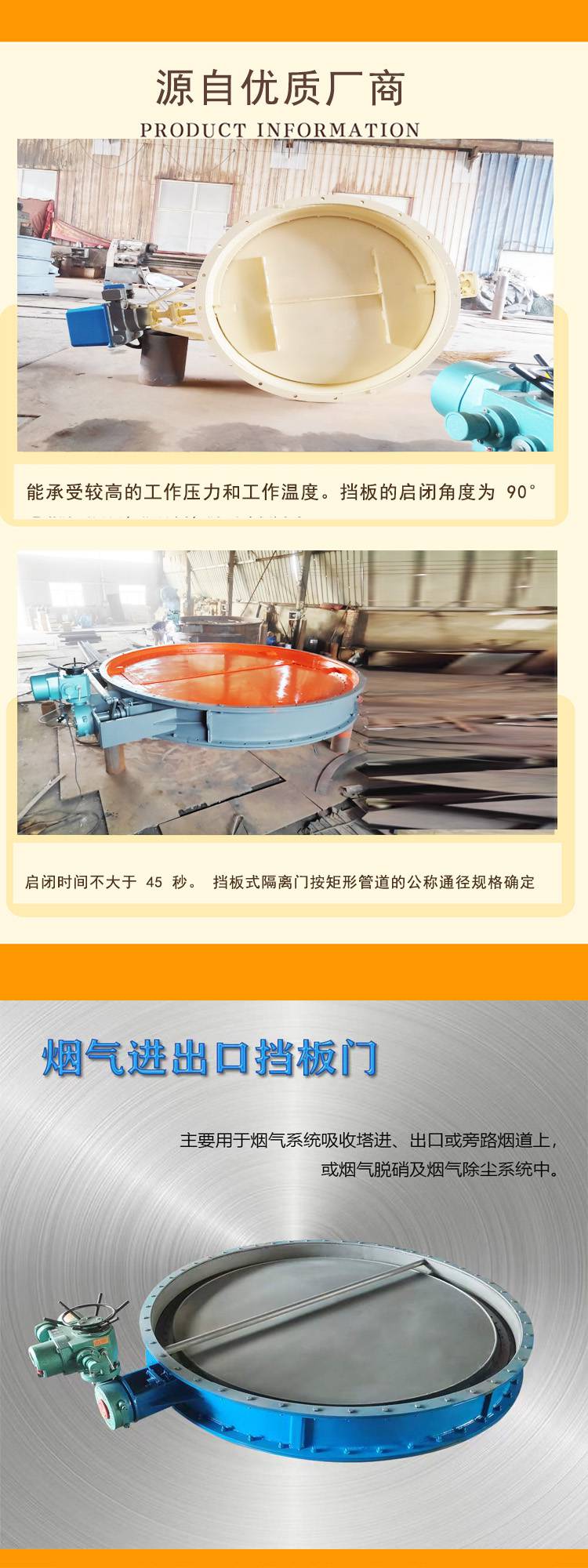 该风门吸取国外有关技术研制而成,框架采用型钢焊接结构,门板为不锈钢、方钢复合不变形制作,对于灰尘较多的管道设有刮板除灰装置及除尘箱。具有启闭灵活,无卡阻、密封严密等特点。