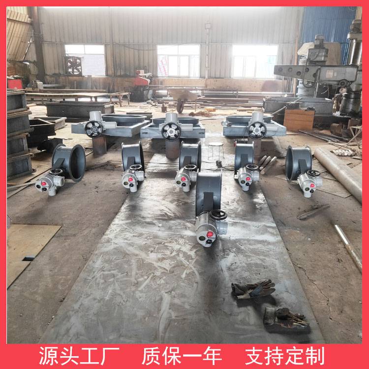 电动插板门闸板上开有一个通径大小的圆口,通过闸板启闭使得闸板上圆口跟通径做完全脱离和相吻合的动作。