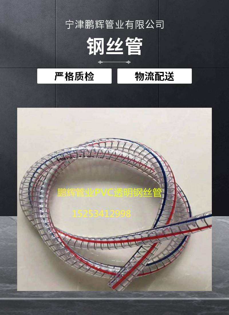 鹏辉供应25mmPVC钢丝管管壁加厚钢丝螺旋管透明柔软PVC钢丝增强软管