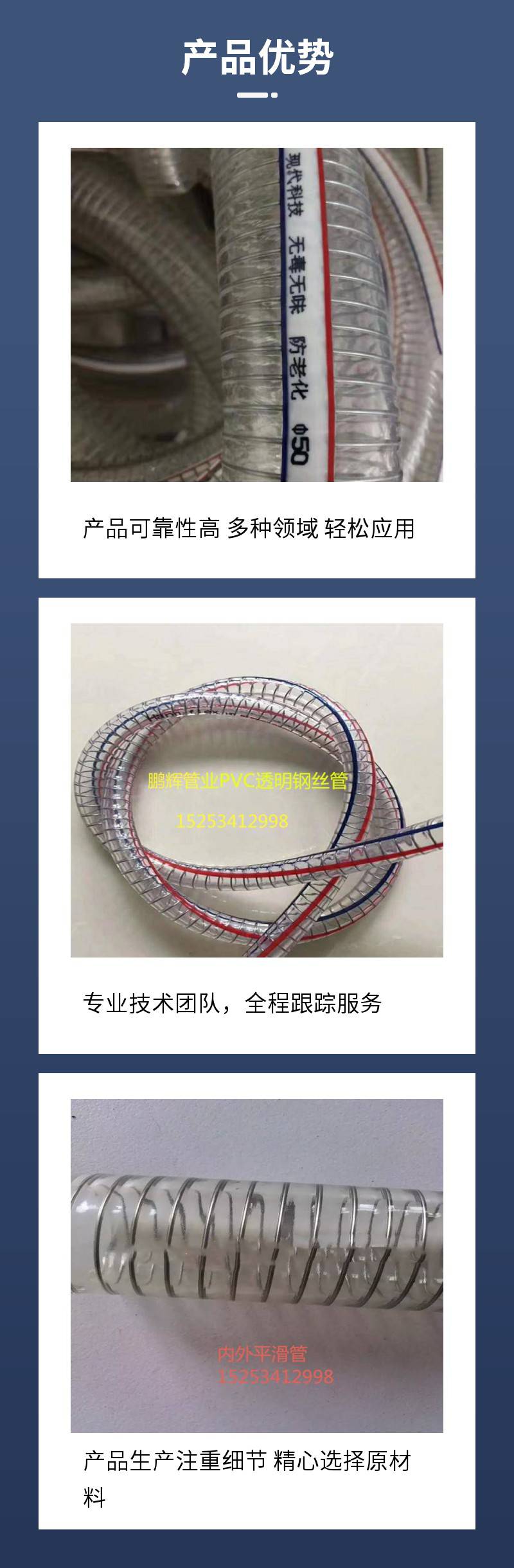 鹏辉供应PVC透明钢丝软管耐油耐酸碱腐蚀耐低温钢丝管