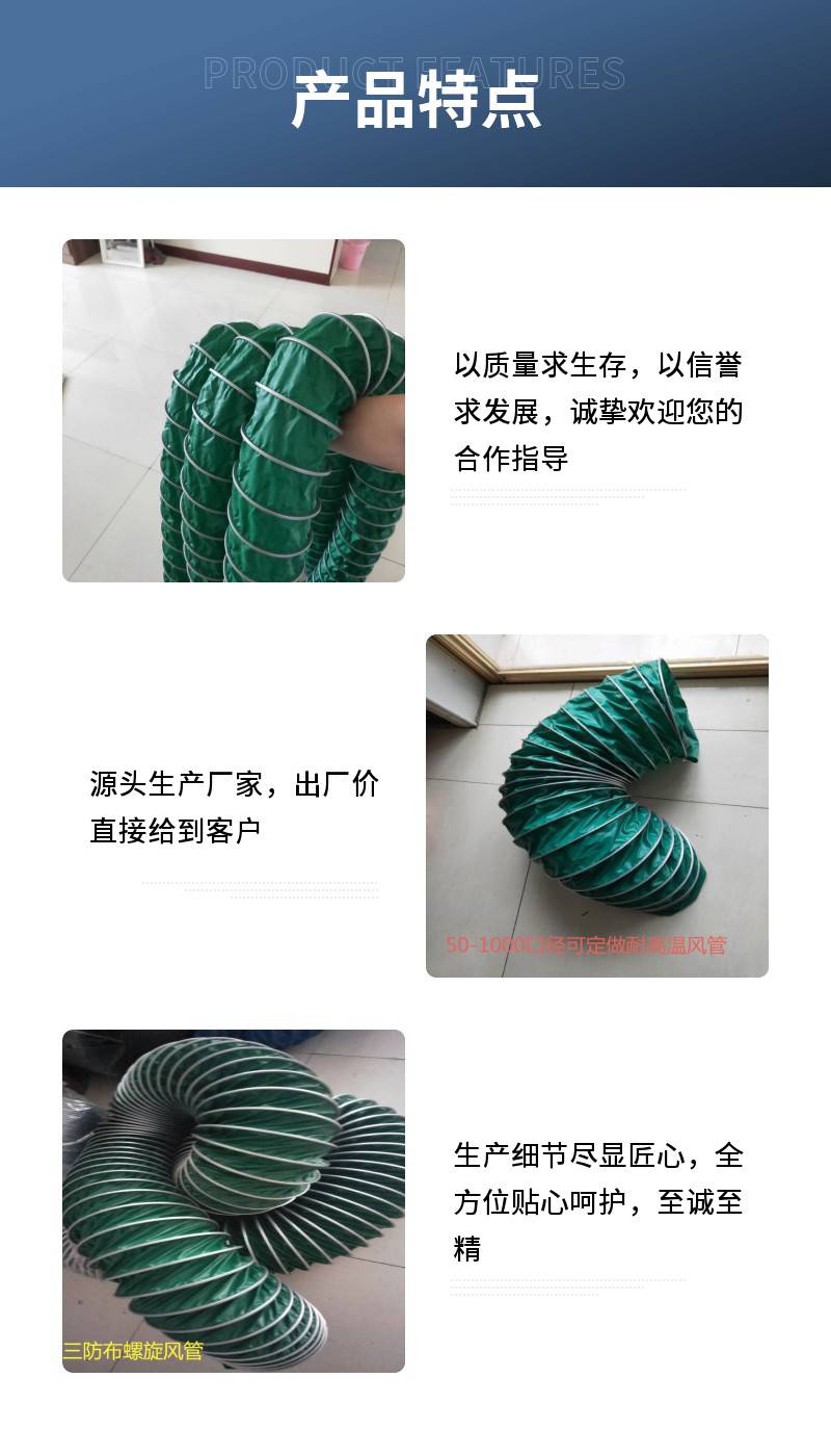 ***空调通风管耐高温三防布伸缩风管绿色帆布软管定制