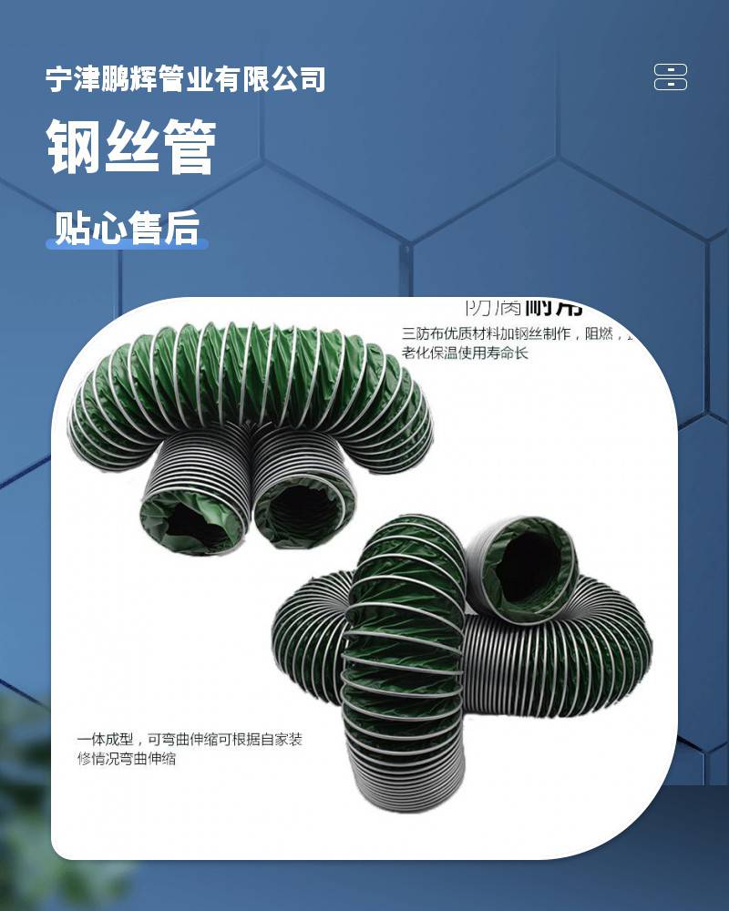 地址:时集镇博古张主营产品:尼龙布风管;PVC塑筋管;PU钢丝伸缩管;高温风管