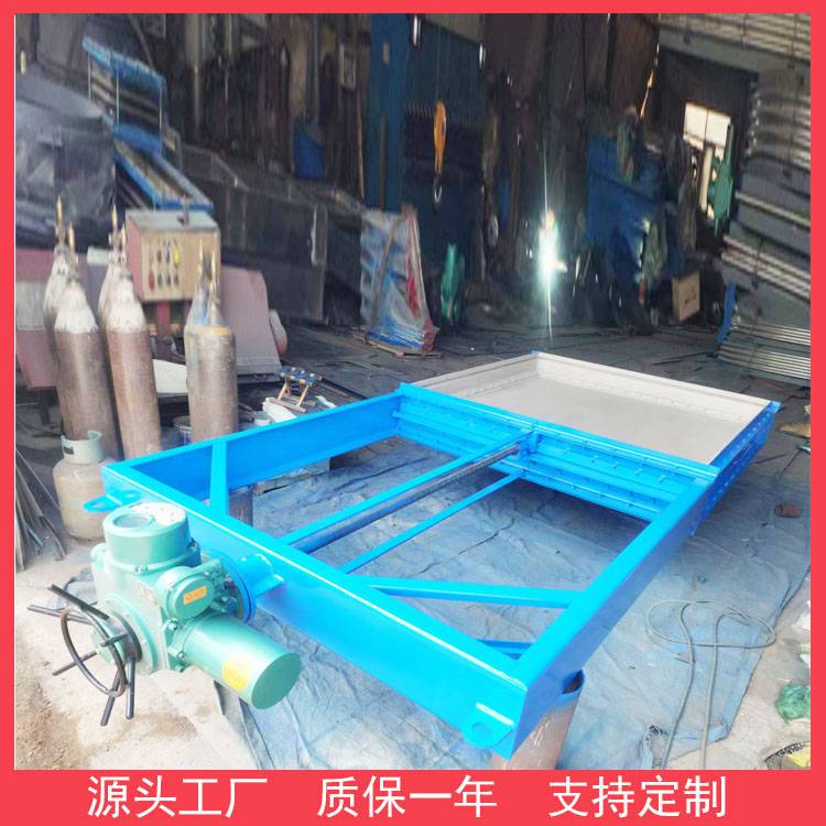 电动插板门闸板上开有一个通径大小的圆口,通过闸板启闭使得闸板上圆口跟通径做完全脱离和相吻合的动作。