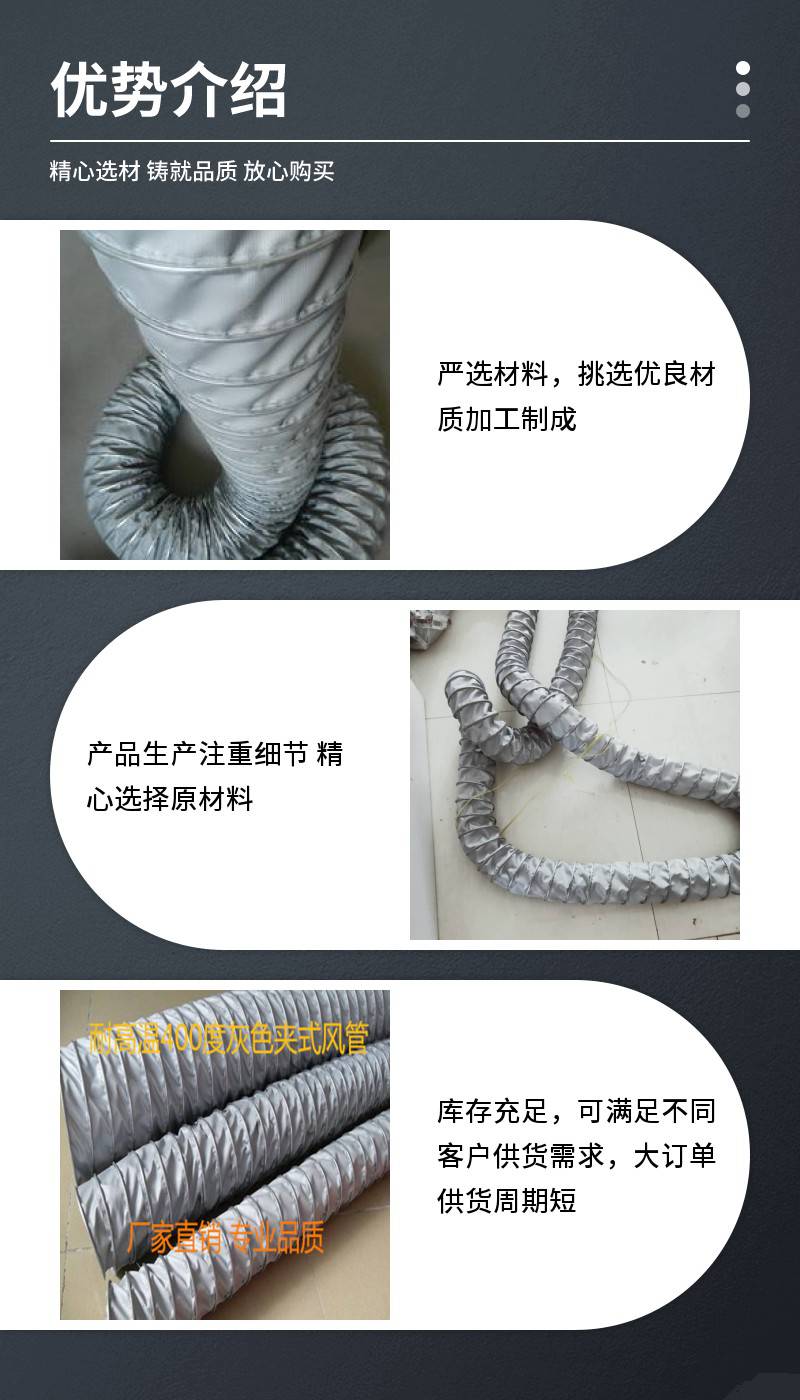 耐高温400度伸缩通风管玻璃纤维夹布耐热可伸缩风管厂家