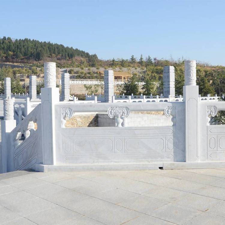大理石石雕护栏汉白玉石雕栏杆、晚霞红石雕栏杆、爵士白石雕栏杆、埃及米黄石雕栏杆等多种大理石石材。
