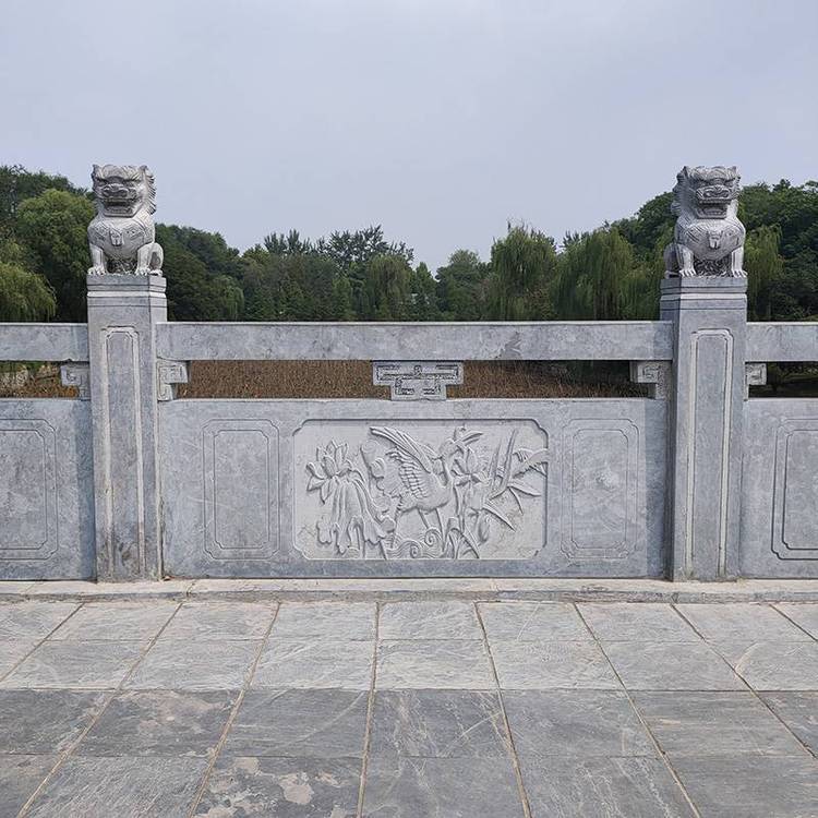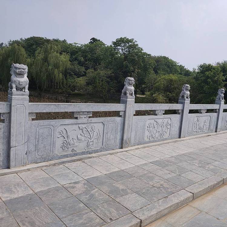 河道青石栏杆按照样式来划分的话,一般可以分为实体型青石栏杆和镂空浮雕型青石栏杆两种形式。河道青石栏杆的设计样式以简单大方为主,这样的话总体青石栏杆也不会很高,一般都雕刻有精美的浮雕。河道青石栏杆由望柱、扶手、底栏及中间花板(栏板)连成的整体。河道青石栏杆的中间花纹又常雕龙刻凤,琢花之用。