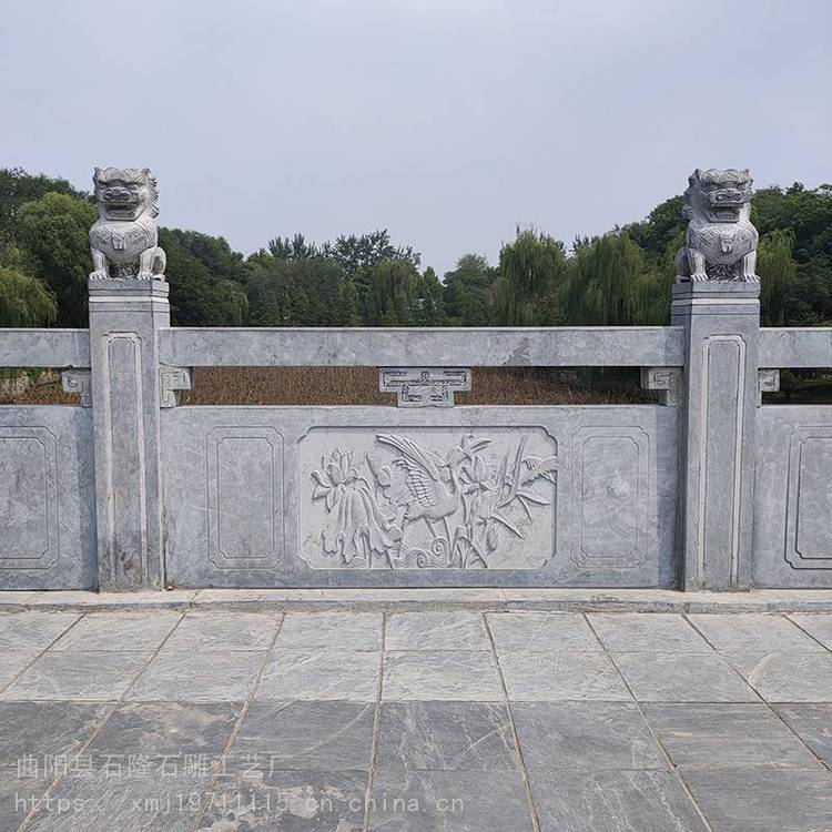 河道边使用的青石栏杆一般都是有几十公里长,数量相对比较庞大大,样式追求简单好看,河道青石栏杆不需要太高,但是需要具备***的艺术特色。青石栏杆安装在河道两边,属于一种安全保护设施,石材应***青石等比较坚硬石材,这样的话才能够承受得住人群挤压、大风产生的测压、风化和其他***力等。