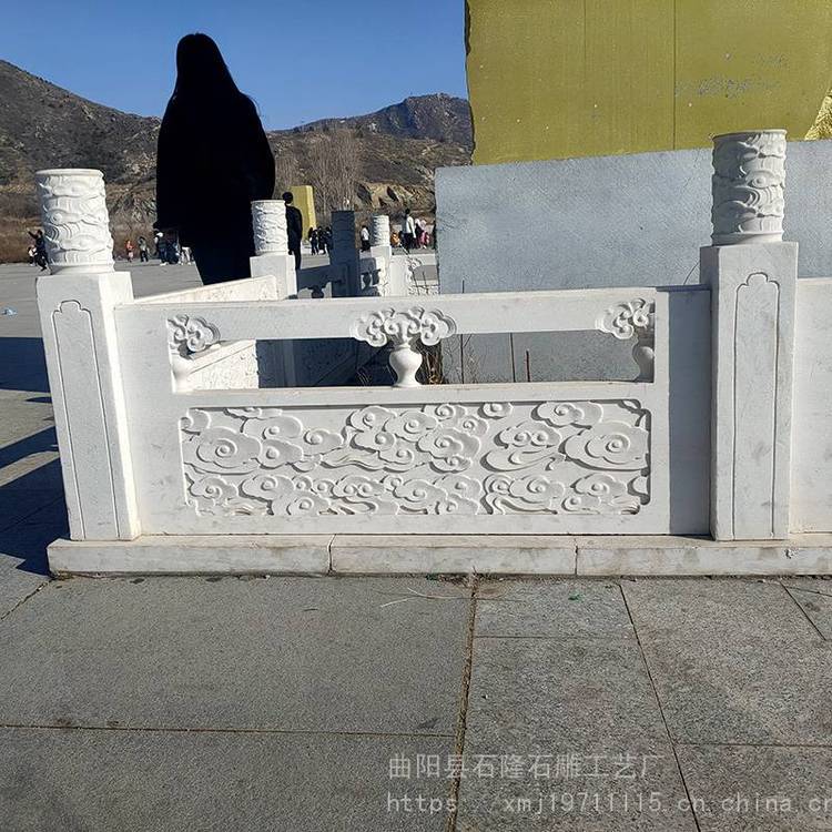 5.维护简便:汉白玉栏杆在日常使用中无需特殊维护,只需定期清洁表面灰尘和污垢即可。同时,我们还可以为客户提供定期检修服务,确保栏杆的正常使用和长期稳定。