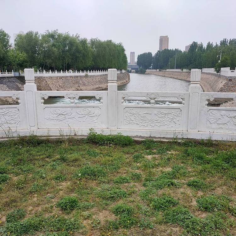 河道边使用的石栏杆一般都是几公里或者几十公里长,数量相对比较多,样式追求简单好看实用,河道石栏杆造价不需要太高,但是需要具备艺术特色。石栏杆安装在河道两侧,属于一种安全保护措施,石材应***草白玉、花岗岩等比较坚硬、密度高的石材,这样的话才能承受住人群挤压、大风产生的侧压、自然风化和其他***力等。