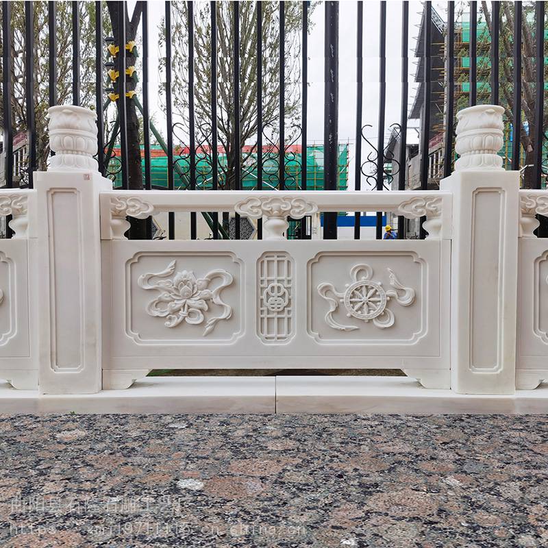寺院莲花柱头石栏杆有别于普通的栏杆,具有端庄、典雅和华丽的感觉。图案以寺庙莲花、心经、观音等为主题,采用手工雕刻、喷砂工艺等制成,展现出品味的设计和创新。***浮雕八宝石护栏则采用工匠手工打造、浮雕雕刻,具有非常高的艺术价值和技术难度,每一件都是的工艺品。在寺庙、古佛堂、古刹等地均有广泛应用。