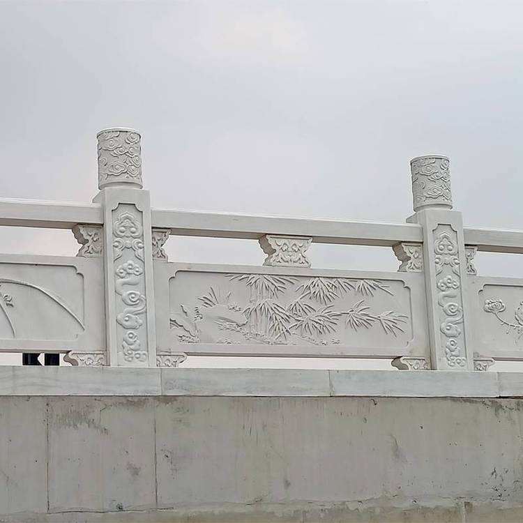 石材桥栏杆采用大理石或花岗岩制作,上有石扶手,中间是石栏杆,下方的底板根据需要,可要可不要,如果是楼梯的开头一端还有一根较大将军柱。拼接处主要是用铁条和云石胶连接。由于其由天然石材经物理加工制作,所以***能力较强,外观较厚重,具有现代气息。室外多用花岗岩材质、大理石材质为主,桥栏杆,室内则多用大理石材质。形式上石雕栏杆有漏空和实体两类。漏空的由立杆、扶手组成,桥栏杆一米,有的加设有横档或花饰。实体的是由栏板、扶手构成,也有局部漏空的。栏杆还可做成坐凳或靠背式的。栏杆的设计,应考虑、适用、美观、节省空间和施工方便等。