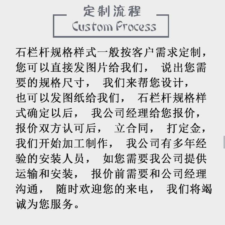 石栏杆护栏是一个极为普遍的概念,因此我们石隆石雕首先将其限定在景观建筑装饰中,仅研究景观建筑装饰石栏杆护栏。建筑景观护栏包含了阳台护栏、别墅石栏杆、河道围栏、景区花岗岩护栏、桥面石围栏等众多分类,按照石材区分有汉白玉护栏、花岗岩栏杆、青石栏杆、大理石围栏等。建筑装饰石栏杆护栏为了使得研究更加助益当下的石栏杆厂家建筑设计创作,加之建筑材料技术每日革新,下图仅选取已建成并投入使用的当代建筑石栏杆护栏案例进行研究,而对于当下已经不适用的护栏设计、功能以及做法,则***讨论,顺带告诉客户我们石栏杆厂家对于石栏杆的定制流程。