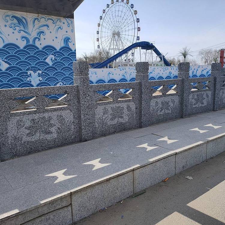 2、花岗岩河道石栏杆的外观采用。通常情况下在河道两边设立石栏杆是为了防护安全措施,花岗岩栏杆的外观也是有多种多样可选,除开以上提起过的有挡板的石栏杆以外,也是有条柱形的,相应较为时代感设计的石栏杆,这样的石栏杆外观相应简易常见,雕刻的呈现主要形式较为少,因而出产速度比较快,主要是打磨平滑,粗细度匀称为主导,因而对比其它浮雕类挡板外观的要***一些,需要留意的是,在这儿类石栏杆的规格尺寸上要略加留意,立柱和立柱之间的空格不要很大,避免 意外事故发生。挡板式的花岗岩河道石栏杆更为多见,通常在挡板部位雕刻图案,整体形象栩栩如生,图案外观变化多端,可以根据需要选择,更为展现石栏杆的美。