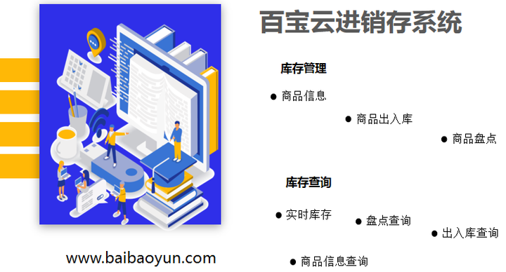 百宝云进销存管理系统,通过库存管理和库存查询,简单的系统步骤来完成商品的出入库跟踪与管理,免费的进销存系统使用便捷每一个企业管理人。