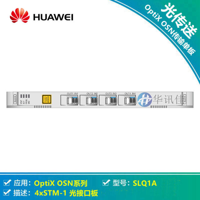 华为OSN3500、OptiX OSN2500、OSN1500 SSN1SLQ1A单板的功能和特性。SLQ1A单板属于4xSTM-1光接口板,实现4路STM-1光信号的接收和发送,完成STM-1信号的光电转换、开销字节的提取和插入处理,并上报线路上产生的告警。