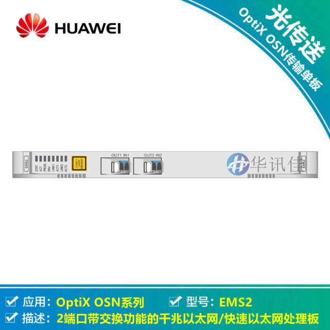 华为EMS2可以插在华为OSN3500子架的slot 1~slot 6、slot 13~slot 16,带宽2.5Gbit/s。