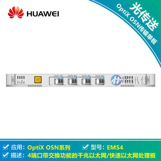 华为OSN3500、OptiX OSN2500、OSN1500 SSN1EMS4单板的功能和特性。EMS4单板支持4端口带交换功能的千兆以太网/快速以太网处理板,处理4路GE业务和16路FE业务。支持二层交换、链路聚合、组播等功能和特性。