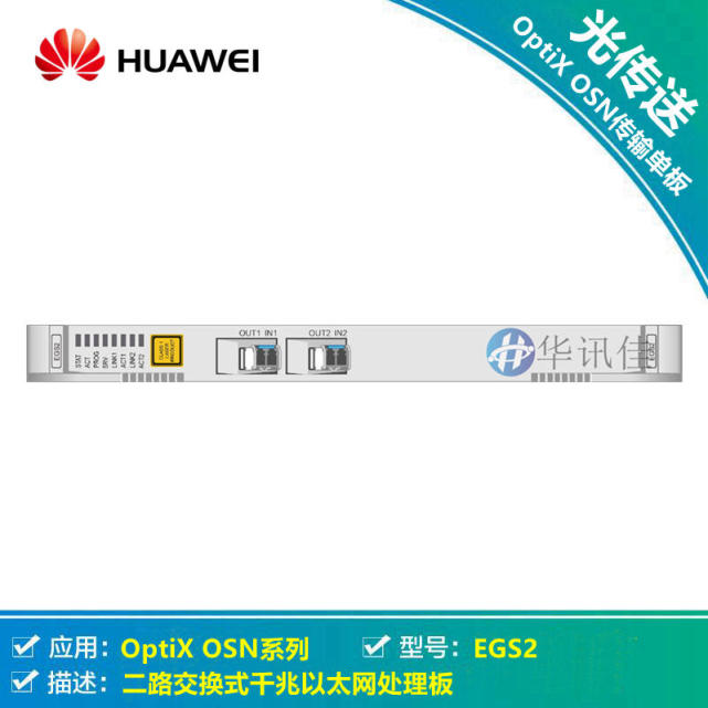 华为OSN3500、OptiX OSN2500、OSN1500 SSN3EGS2单板的功能和特性。华为EGS2单板属于二路交换式千兆以太网处理板,处理2路GE业务,采用面板直接出线。支持二层交换、MPLS、组播等功能和特性。