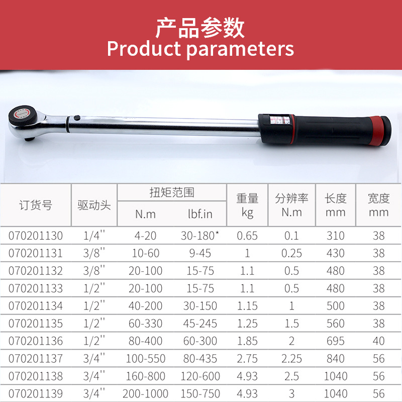 ·符合***工程学的柔软TPR手柄使用起来非常舒适,独特的保持位置。锁环使调整更容易,并确保选定的扭矩,以防意外更改