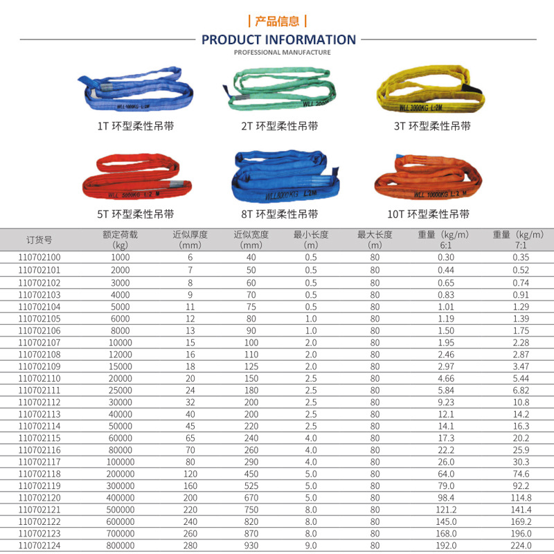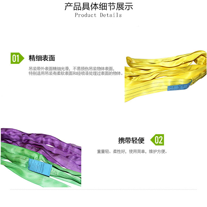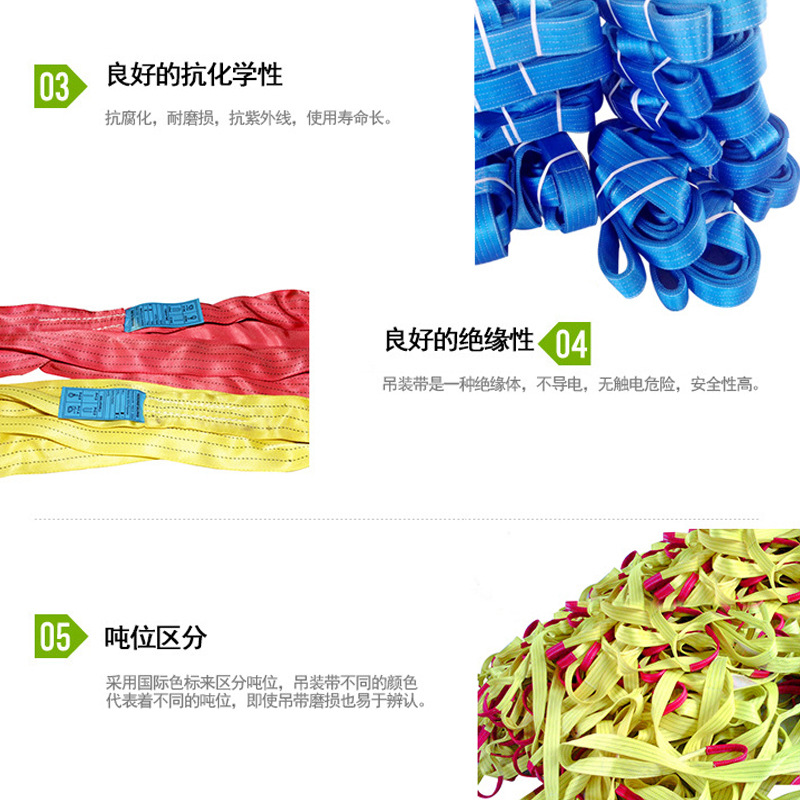 ·圆环带承载芯由无级环绕平行排列的丝束组成,采用单股丝加捻。保护套有***双层耐磨套管对接成环型,以警示、保护、承载芯安全使用。根据不同吊装环境要求,可***制作:普通型、防火型、荧光型、光检型、防护型、高强型、组合型产品系列。