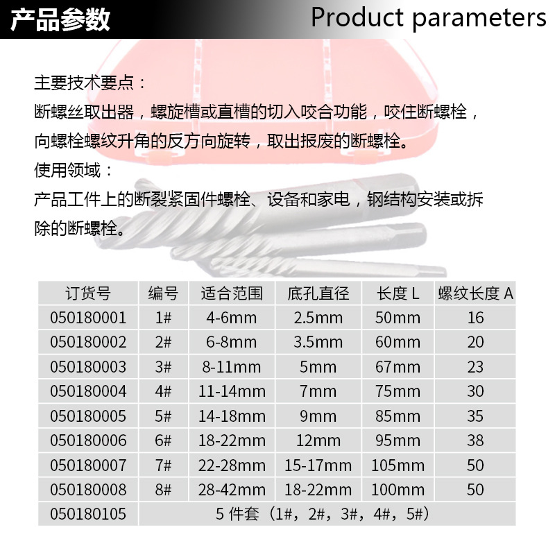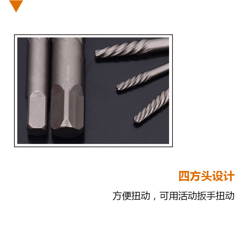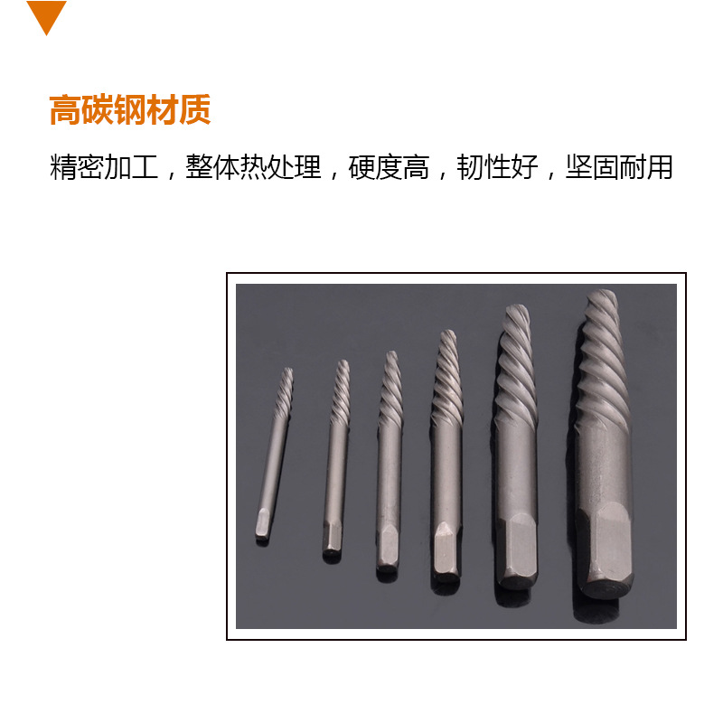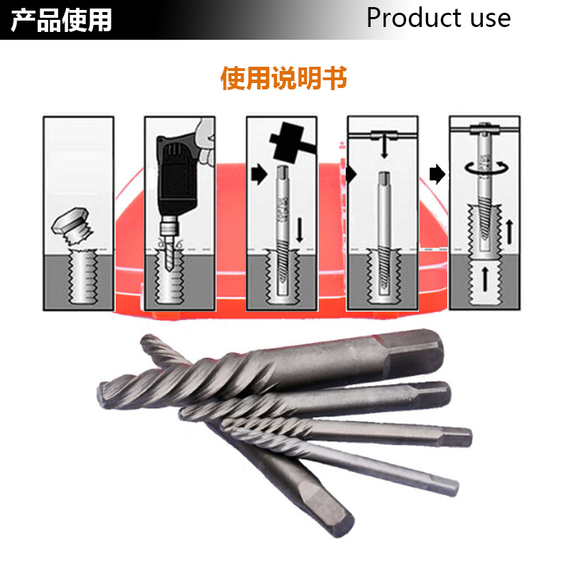 断螺丝取出器,螺旋槽或直槽的切入咬合功能,咬住断螺栓,向螺栓螺纹升角的反方向旋转,取出报废的断螺栓