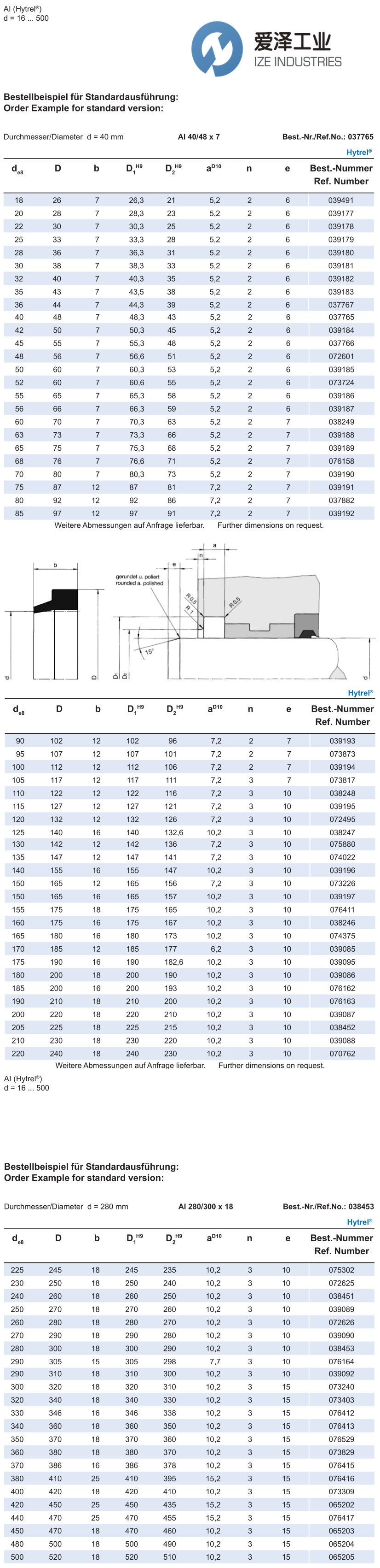 爱泽工业(IZE INDUSTRIES)***经销、常用HUNGER防尘环型号: