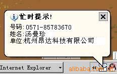 这个时候在电脑的右下角弹出一个忙时提示框框,显示来电人的号码、姓名和单位。