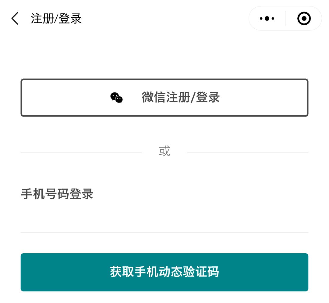 尝试注册,发现这里有「微信注册/登录」与「手机号码登录」两个选择。