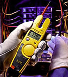 Fluke T5,一台紧凑工具,就可检测电压,通断和电流,仅需转动拔盘,选择测量功能,剩下的工作就全由T5完成。坚固的测试表笔可以紧紧插在T5背面的卡槽中,使你轻易就可把它装在口袋里。使用H5护套,还可以把T5别在腰带上,开钳(OpenjawTM)电流测试方式,可在不断开电路的情况下,测量高达100A的电流。