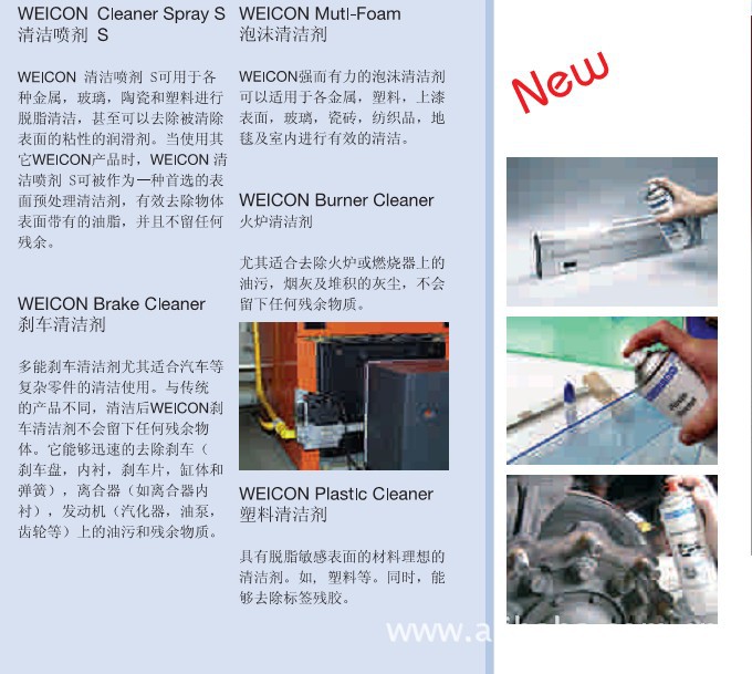 WEICON 清洁喷剂 S 可以用于各种金属,玻璃,陶瓷和塑料上进行脱脂清洁,甚至可以去除被清除表面的 粘性的润滑剂。当使用其它WEICON产品时,此产品还可以被用作***的表面预处理清洁剂,有效去除物体表面的油腻,并且不留任何残余。
