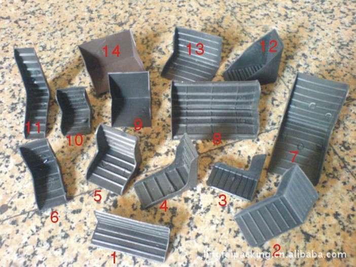 此款塑胶护角,用于石材、家具、木艺及工艺品包装上,作用于四个包装角处,保护产品不被撞伤、摔伤,承受力比泡沫及纸的护角大得