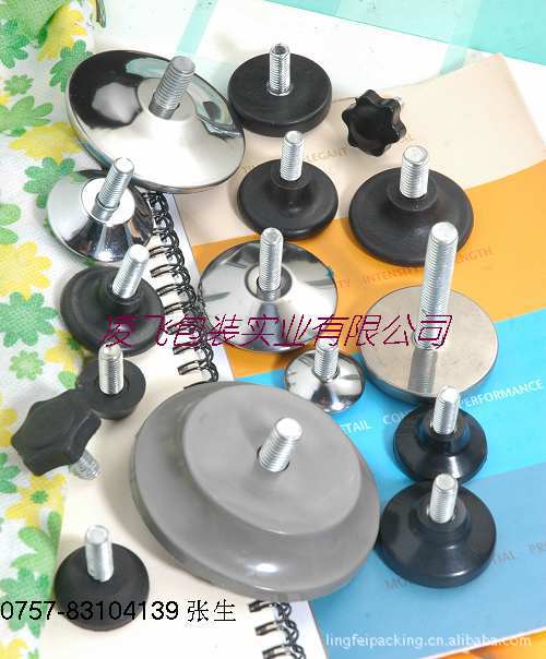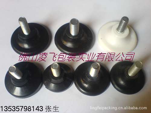 调脚套等家具配件,用于办公家具、办公室屏风,橱柜,等调整高度平衡,材质分橡胶和塑料两种 有M6\M8\M10等不同规格的罗杆,有固定式或摇摆式两种,底座规格有多种!有塑料底,橡胶底和金属底等,欢迎来电查询!