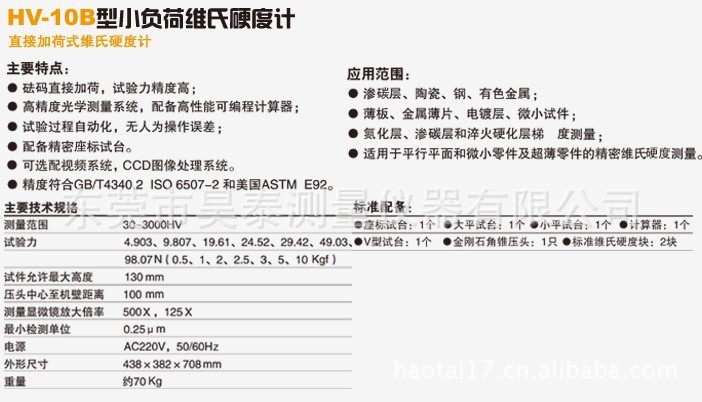 该信息“HV-10B型小负荷维氏硬度计”由东莞昊泰测量仪器有限公司为您提供。如果您对产品“HV-10B型小负荷维氏硬度计”有相关的技术需求,请与东莞昊泰测量仪器有限公司直接联系或在本站给他们留言,我司为您提供“HV-10B型小负荷维氏硬度计”的祥细信息