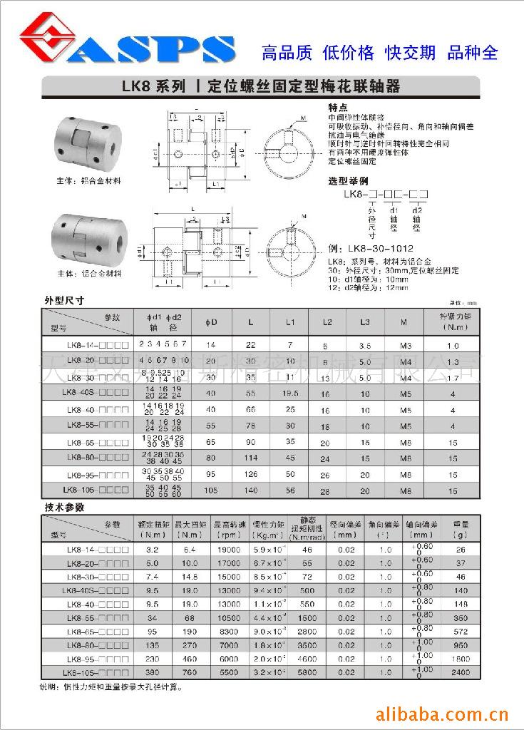 | 联轴器类型 | 梅花联轴器 | 品牌 | ASPS |