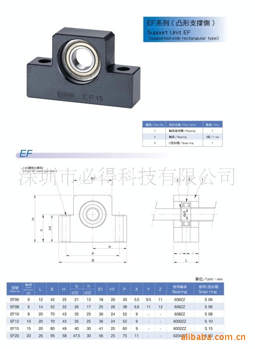 支撑单元是考虑了安装周围空间的、小体积的设计。同时,装入了经过调整预压的轴承,交货后就可直接进行装配,既降低了装配工时,又可提高装配精度。