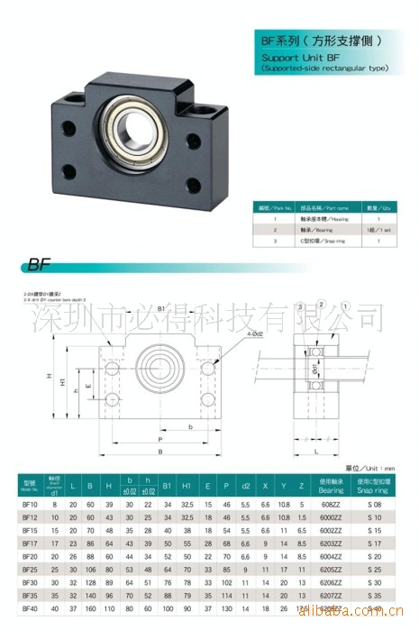 对标准滚珠螺杆库存品的轴端成品,预备了标准化的支撑单元EK、EF型,对一般滚珠螺杆预备了标准的支撑单元BK、BF型。