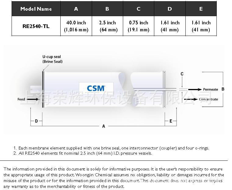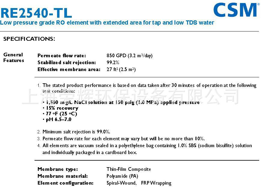 世韩C***反渗透膜的综合特性: