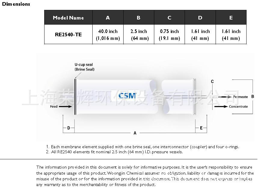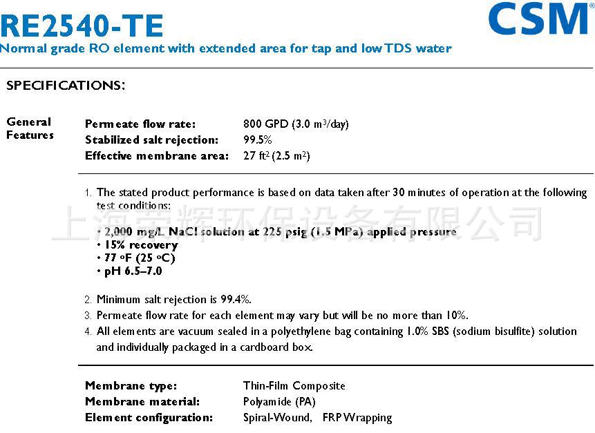 世韩C***反渗透膜的综合特性:
