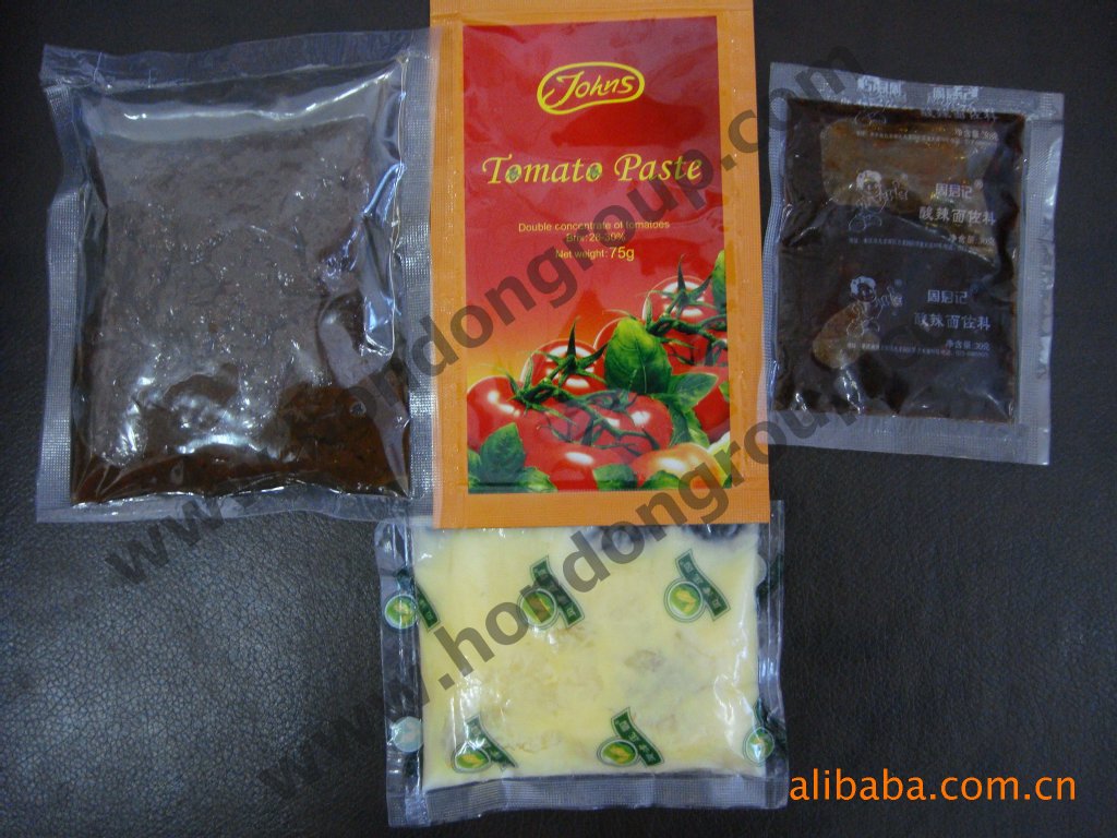 2、酱液机型:适用于包装火锅底料、面酱、辣椒酱、东北大酱等酱液的包装。