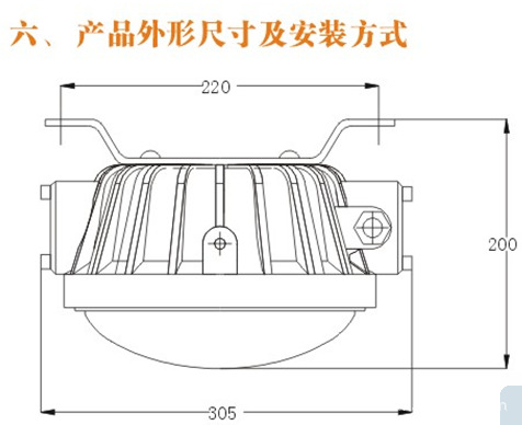 - 搞防护的结构设计,装有耐老化的硅橡胶密封垫,确保达到IP67防浸水的要求,优化的检修操作设计,设置快开启盖用于更换光源