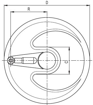 IR.620型聚酰胺基(PA)聚合体,黑色,亚光饰面。双径体特殊设计和半球形尾端部使操作员在转动手轮时,可安全握紧,符合工程学要求。