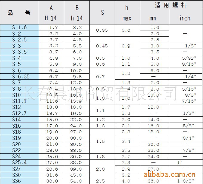 | 标准编号 | S.VS | 规格 | 多种供选 |