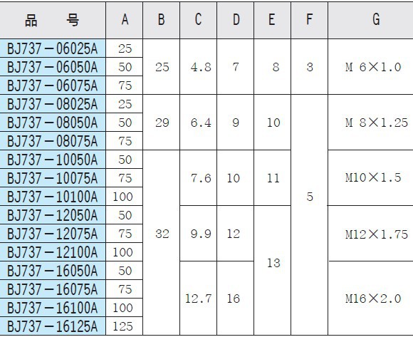 | 螺纹规格 | 公制多种 | 公称长度 | 25-125(mm) |