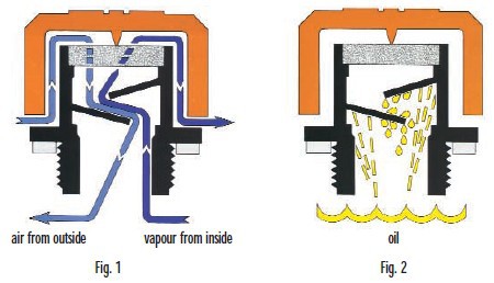 SFP.通气塞带ELESA专利的防溅罩,可防止油液损耗。特别适用于油液晃动特别厉害,有可能会溅到通气罩的场合。